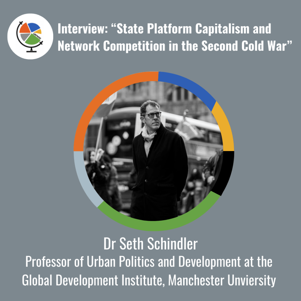 Dr Seth Schindler is Professor of Urban Politics and Development at Manchester University’s Global Development Institute. Dr Schindler’s research focuses urban and regional transformation initiatives in the context of broader economic and political transitions. Schindler is also the co-founder of the Second Cold War Observatory, a collective of scholars researching the nature of great power rivalry through research on different environments and societies around the world. His latest book, titled ‘State Platform Capitalism: The United States, China and the Global Battle for Digital Supremacy’, co-authored with Steve Rolf, explores the importance of digital platforms in global competition between the US and China. In this interview we discuss the Second Cold War in the context of recent events, and the impacts of rivalry on third countries.